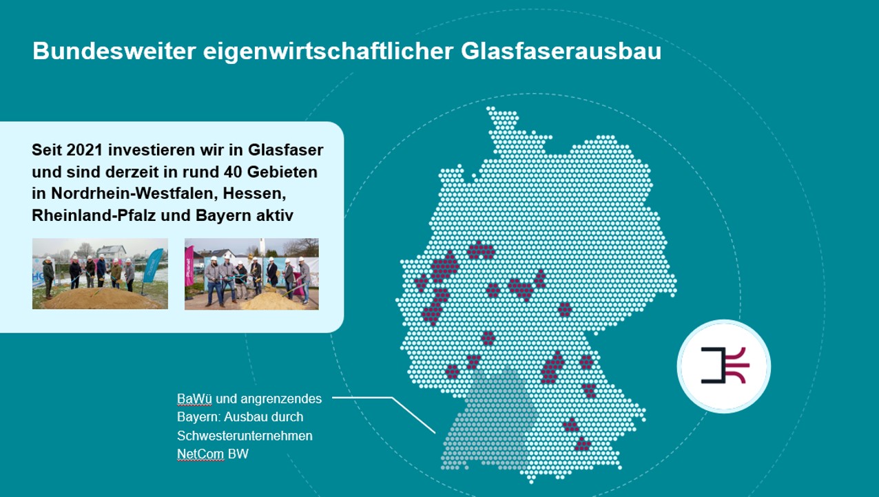 Plusnet investiert signifikant in den eigenwirtschaftlichen Glasfaserausbau. Dieser erfolgt multilokal dort, wo es sich lohnt, mit Fokus auf unterversorgte Gewerbegebiete. Die ersten Kooperationsverträge mit Kommunen wurden 2021 abgeschlossen.
