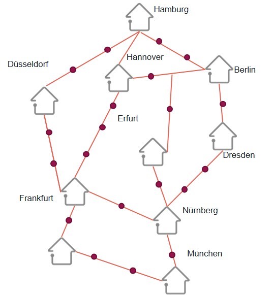 Auf Basis unseres Glasfaser-Backbones bieten wir eine bundesweite Open-Access-Plattform. Unser Ansatz umfasst die technische Netzzusammenschaltung und eine Order-Schnittstelle, über die Teilnehmer ihre Geschäftsprozesse und Vertragswerke automatisiert abwickeln können. Jeder Akteur, ob lokaler Netzbetreiber oder Service Provider, muss nur einen einzigen Vertrag mit unserer Plattform abzuschließen. Er kann dann sofort mit allen Marktteilnehmern kooperieren und erhält standardisierte Schnittstellen und Prozesse.