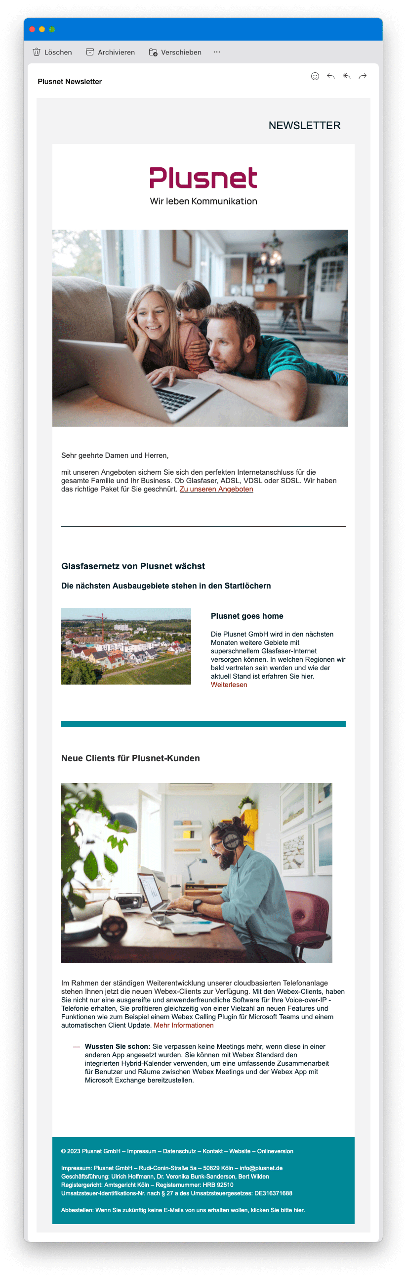 Unten stehend finden Sie ein Beispiel eines unserer vergangenen Newsletter. In unseren zukünftigen Sendungen erwarten Sie aktuelle Neuigkeiten zur Plusnet.